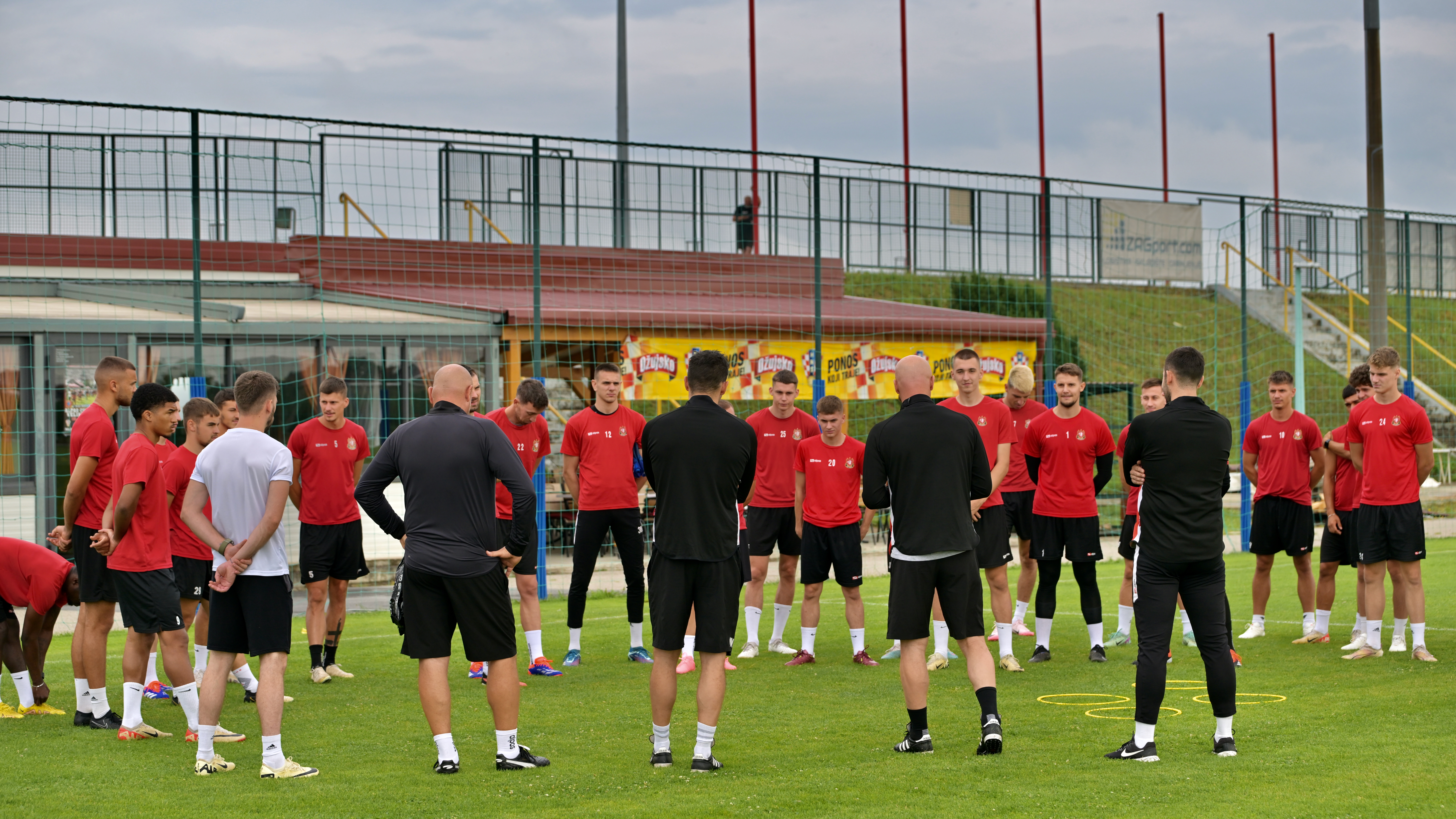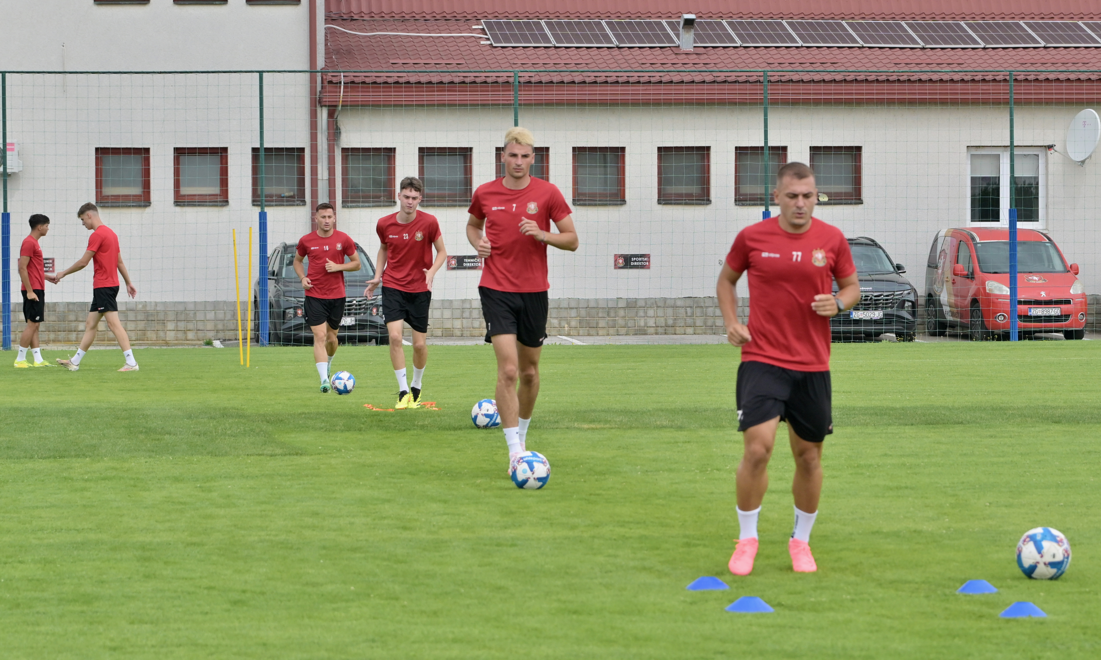 Pri samom dolasku na stadion u Velikoj Gorici u oči na parkingu upada ne mali broj automobila sa splitskim registracijama, a stigli smo na sami početak treninga drugog dana priprema koje se odvijaju pod ravnanjem Rajka Vidovića šefa i njegovih suradnika.